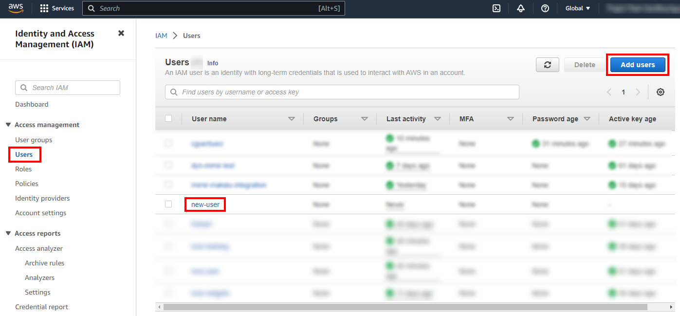 In the navigation pane, choose Users, select the name of the intended user, and then choose the Security credentials tab.