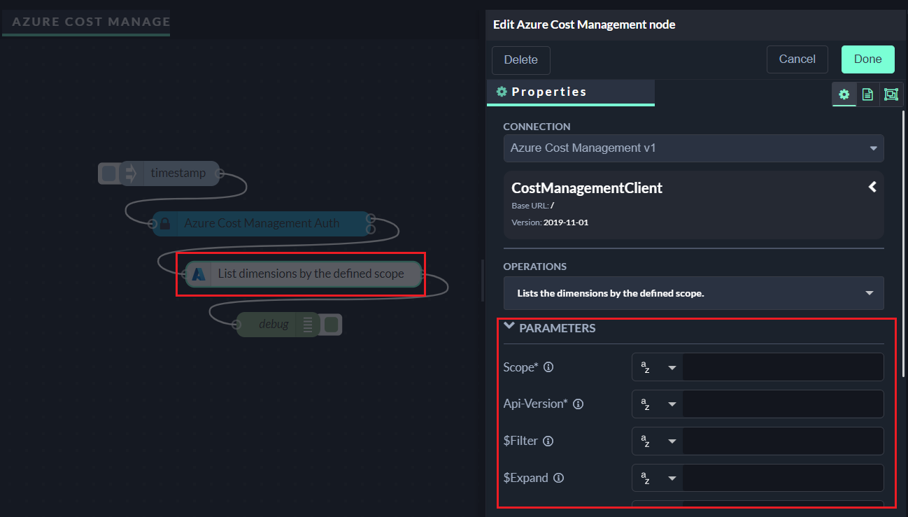 Enter your API-Version parameter and any other necessary parameters into the Azure Cost Management API nodes and start using the integration!