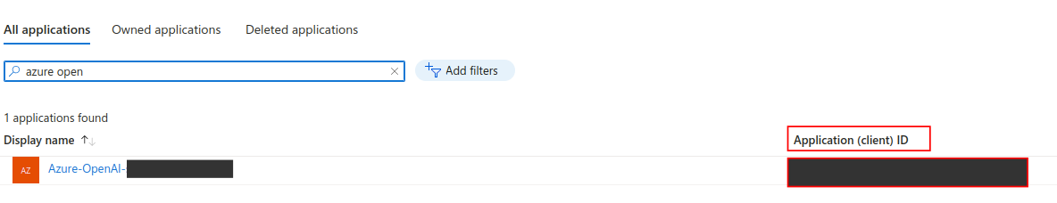 Locate your application. Your Application (client) ID is displayed here as well. Click on your application name.