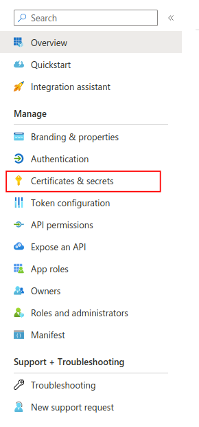 In the left toolbar select Certificates & secrets.