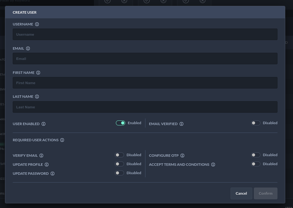 Choose Confirm. The view will refresh the list of users and has a new entry.