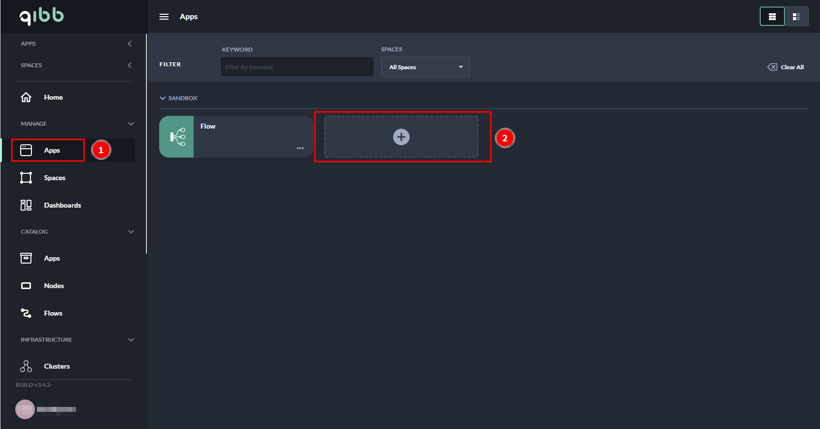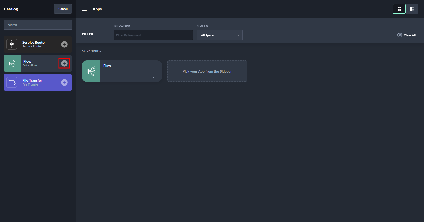 Navigate to Manage → Apps in the navigation sidebar and select the Add button to deploy an App in a preferable Space.