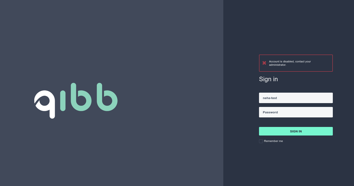If a disabled user tries to log in to the qibb portal now, the following message is displayed:
