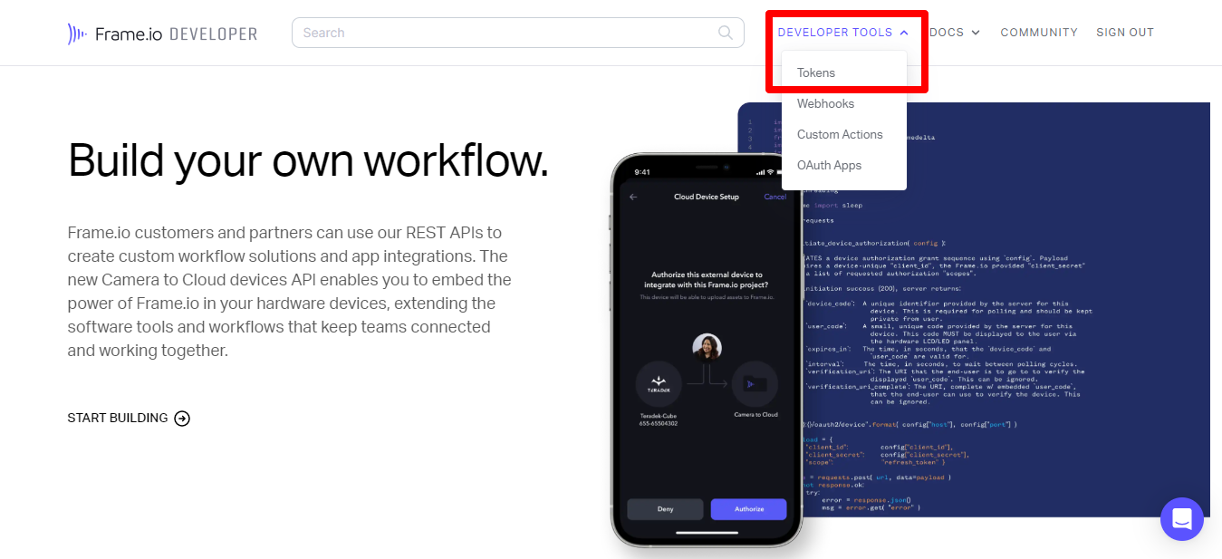 Add a variety of Frame.io features to your application. Use the API to create custom workflow solutions and app integrations.