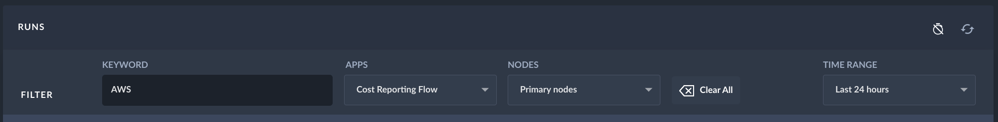 Time Range: Filter runs within a specific time range, such as Last 24 hours.