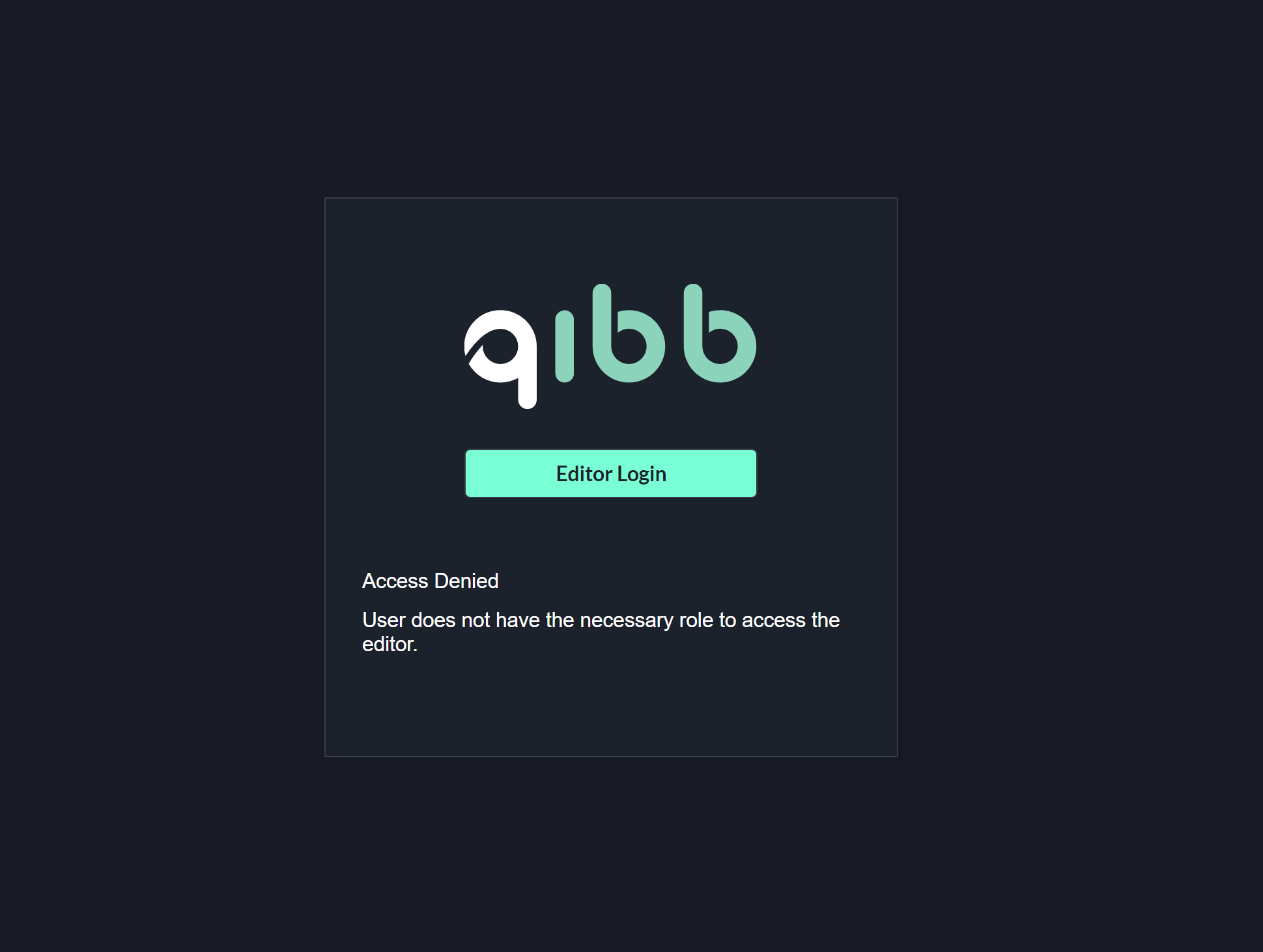 If the user has a valid session or is logging in through the separate qibb login page, and has one of those roles of this specific Flow App assigned, they will be forwarded to the Editor itself. Otherwise, a login error message like this will appear:
