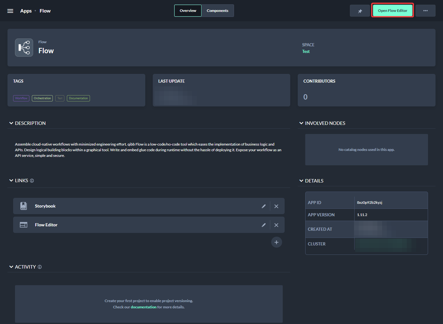 To open the Editor of a deployed Flow App, click on a Flow App in the App overview of the Portal. The detailed overview of a Flow App will have a Button named Open Flow Editor in the upper right. This will open a new Tab with the Editor of that Flow.