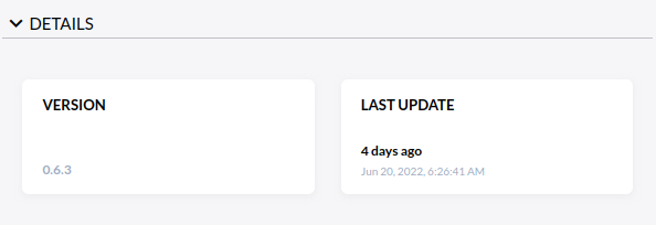 The detail section visualizes the version and last update of a node in an expandable and collapsable expansion panel.