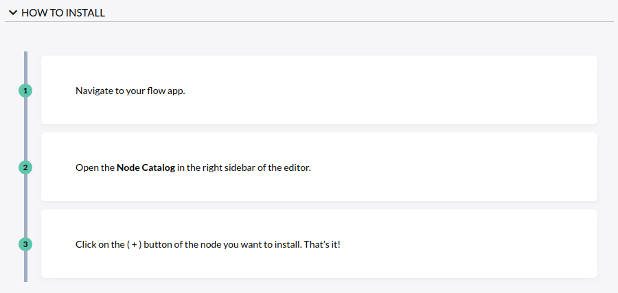 This section lists the steps required to install a node also in an expandable and collapsable expansion panel.