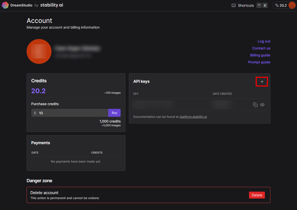 Before getting started with Stability AI integration, you need to create an API key. Here's how: